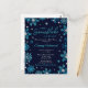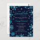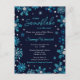 This elegant and glamourous invitation postcard features watercolor turquoise blue and silver faux glitter snowflakes and sparkles on a navy blue background. It is perfect for a winter or Christmas themed baby shower.