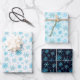 Blue and Silver Winter Snowflakes Pattern Wrapping Paper Sheet