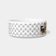 This is a heavy, durable bowl decorated with Tibbies of many colors, the perfect size for hungry/thirsty Tibs. The design is interesting and printing clear.