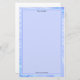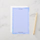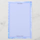 This stationery design features a border of swirls with blue and teal fine lines inside the border. Fill in the template field with your information, remove the text or click customise to select a typeface style, size, and colour you prefer.