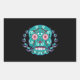 Blue and Teal Sugar Skull Laurel Leaf Rectangular Sticker