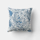Blue and White Abstract Floral Outdoor Pillow
