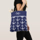 Blue and White Anchor Pattern Monogram Nautical Tote Bag