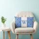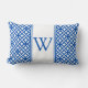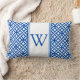 Blue and White Arabic Trellis Monogram Lumbar Cushion