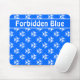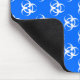 Bright blue mousepad with a repeating biohazard symbol pattern and editable text field for easy customisation with your own name or message.