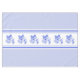 European inspired tablecloth done in light blue with white bold stripe down the middle, with a blue bird and edelweiss motifs. Lovely addition to any table for any occasion.
