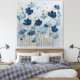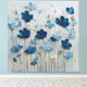 A textured impasto floral painting featuring delicate blue and white blossoms with golden centers, rising gracefully on thin stems against a neutral background. This abstract wall art exudes calm, elegance, and timeless natural beauty.