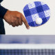Blue and White Bold Checkered Plaid Design Ping Pong Paddle