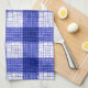 Blue and White Bold Checkered Plaid Design Tea Towel