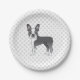 Blue And White Boston Terrier Cartoon Dog & Paws Paper Plate