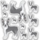 Destei's original cartoon illustration of a cute blue and white coat colour Boston Terrier breed dog. The design is placed multiple times on the sheet in different sizes.