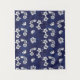 Hamptons navy blue botanical white cherry blossom floral patterned wall tapestry