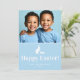 Blue And White Bunny With Custom Photo Easter Card