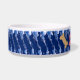 The original artwork by ZoeSPEAK on this breezy looking Dog Bowl is a pattern with a mood of the seaside. Done in marine blue and white, the bowl is banded by shapes which look like water droplets in a diagonal pattern. At the centre of the band is text in white which reads "SHELBY'S WATER BOWL". This is set to personalise with your own dog's name, or delete if you like. To the left of the name is a pink paw print and a light brown dog bone. These, too, can be moved or removed as you wish. A casual chic doggie look with coordinated tableware for humans.