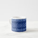The original artwork by ZoeSPEAK on this breezy looking Espresso Cup is a pattern with a mood of the seaside. Done in marine blue and white, the cup is covered in bands of shapes which look like water droplets in a zigzag pattern. A casual chic look great for a cottage at the beach, or anywhere you want the same mood.