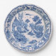 This plate design features a large blue and white chinoiserie gazebo on a blush pink background.