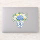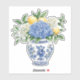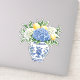 This vinyl sticker features a beautiful blue and white chinoiserie vase with blue and white hydrangea flowers and lemons.