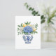This note card features a beautiful blue and white chinoiserie vase with blue and white hydrangea flowers and lemons. Personalise with your choice of name or special text on the back.