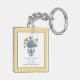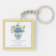 This square keychain features a beautiful blue and white chinoiserie vase with blue and white hydrangea flowers and lemons with a matching yellow background. Personalise with your choice of name and special text on the back. Fun for personalised gift bags and party favours.