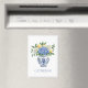 This kitchen fridge magnet features a beautiful blue and white chinoiserie vase with blue and white hydrangea flowers and lemons. Personalise with your choice of name or special text. Fun for personalised gift bags and party favours.