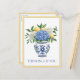 This postcard features a beautiful blue and white chinoiserie vase with blue and white hydrangea flowers and lemons. Personalize with your choice of name or special text.