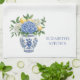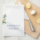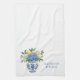 This kitchen dish towel features a beautiful blue and white chinoiserie vase with blue and white hydrangea flowers and lemons. Personalise with your choice of name or special text.
