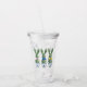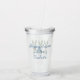 This Easter acrylic tumbler features cute bunny rabbit green topiaries with pink, blue and yellow bows in blue and white chinoiserie flowerpots. Personalize the holiday message and name on the back with your choice of special text. Great for personalized party favors and gift bags.