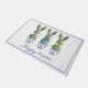 This Easter doormat features cute bunny rabbit green topiaries with pink, blue and yellow bows in blue and white chinoiserie flowerpots. Personalize the holiday message with your choice of special text.
