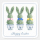 These Easter stickers feature cute bunny rabbit green topiaries with pink, blue and yellow bows in blue and white chinoiserie flowerpots. Personalize the holiday message with your choice of special text.