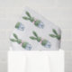 These Easter tissue paper sheets feature cute bunny rabbit green topiaries with pink bows in blue and white chinoiserie flowerpots.