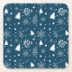 Blue and White Christmas Trees, Snowflakes Holiday Square Paper Coaster