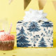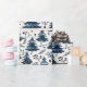 Vibrant patterns of dark blue Christmas trees and delicate white accents create a festive atmosphere, perfect for wrapping holiday gifts and celebrating winter's beauty during the season.