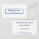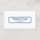 A blue frame holds the name of your business and a brief slogan in blue text on a clean, white background, while the back has your information. Could be used for a wide variety of professions.