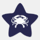 White crab shape against a dark nautical blue. The species is a blue crab.