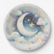 Blue and White Crescent Moon Celestial Boho Modern Paper Plate