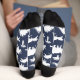 Fun dinosaur themed socks with cute white dinosaurs on navy blue