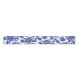 This ribbon features a blue and white dahlia flowers toile de jouy pattern.