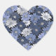 Blue and white daisy pattern heart sticker