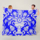 Blue and White Damask Floral Pattern Elegant Fleece Blanket