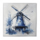 Blue and white Delft style landscape with windmill Tile