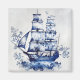 Blue and white Delft style sailing ship in the sea Magnet