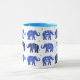 Stylish coffee mug with a blue and white elephant and polka dot pattern. Customise to add any text you want. Great mug for home or office.