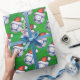 Blue and White Festive Soccer Ball on Green Wrapping Paper
