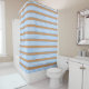 Blue and white five stripes pattern with tan shower curtain