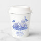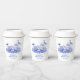 These bridal shower tea party paper cups have a monochromatic design featuring a blue and white tea set surrounded flowers. You can personalise with a name and date.