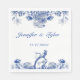Create some personalised paper napkins that have the look of antique china. These napkins are ready to be personalised with the names of the bride and groom and their wedding date or with your own custom message. It has a blue and white floral and bird motif that's made to look like traditional china plates for party supplies with an elegant look.