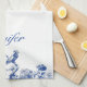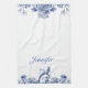 Create a personalised gift with an elegant look. This kitchen towel has blue and white floral illustrations with a bird accent that's styled to look like vintage china dishes. It's ready to be personalised with a name in matching blue lettering.