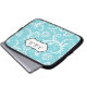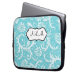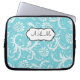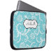 This stylish blue and white floral damask laptop sleeve has a text box for you to customise with your own name, initials, business name, or other text. If you need any help customising, please email niteowlstudio@gmail.com.