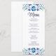 Blue and White Floral Fiesta Wedding Menu Card