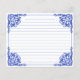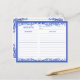 Blue and White Floral Recipe Card